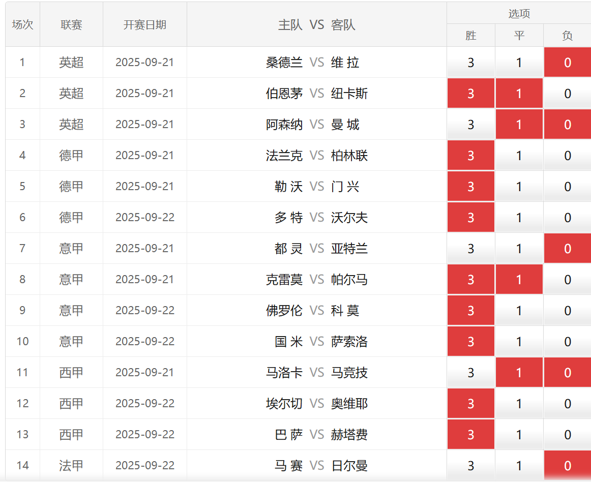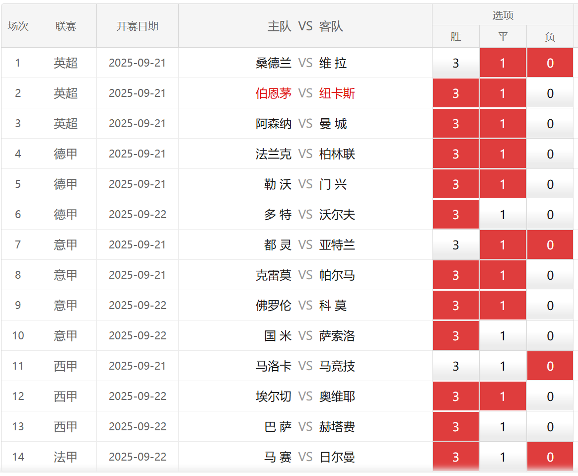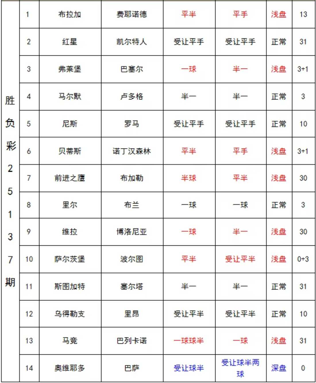 胜负彩25138期埃神足彩推荐:部分场次分享
