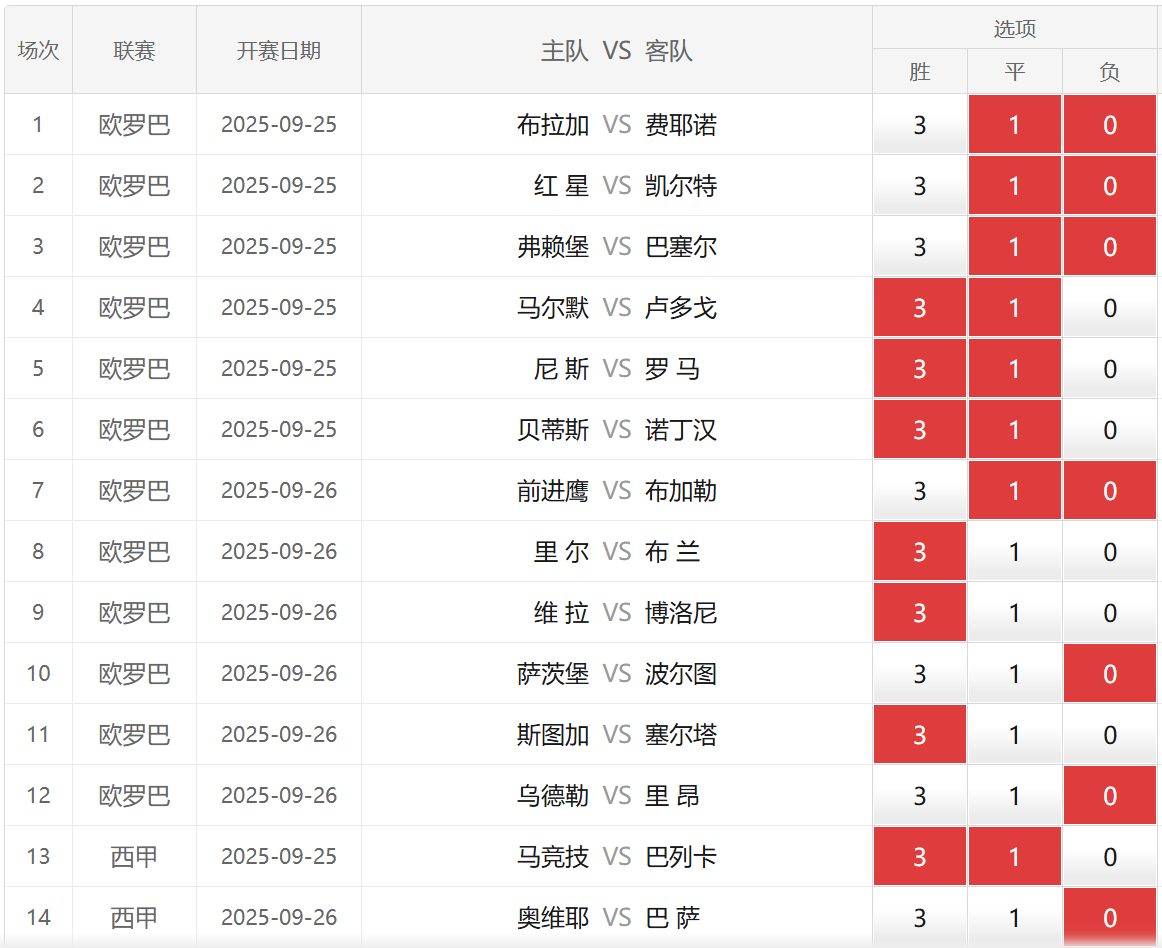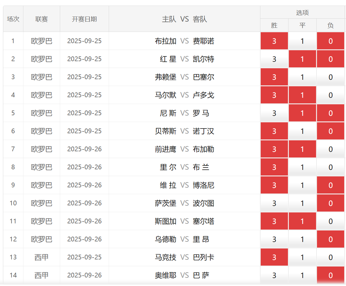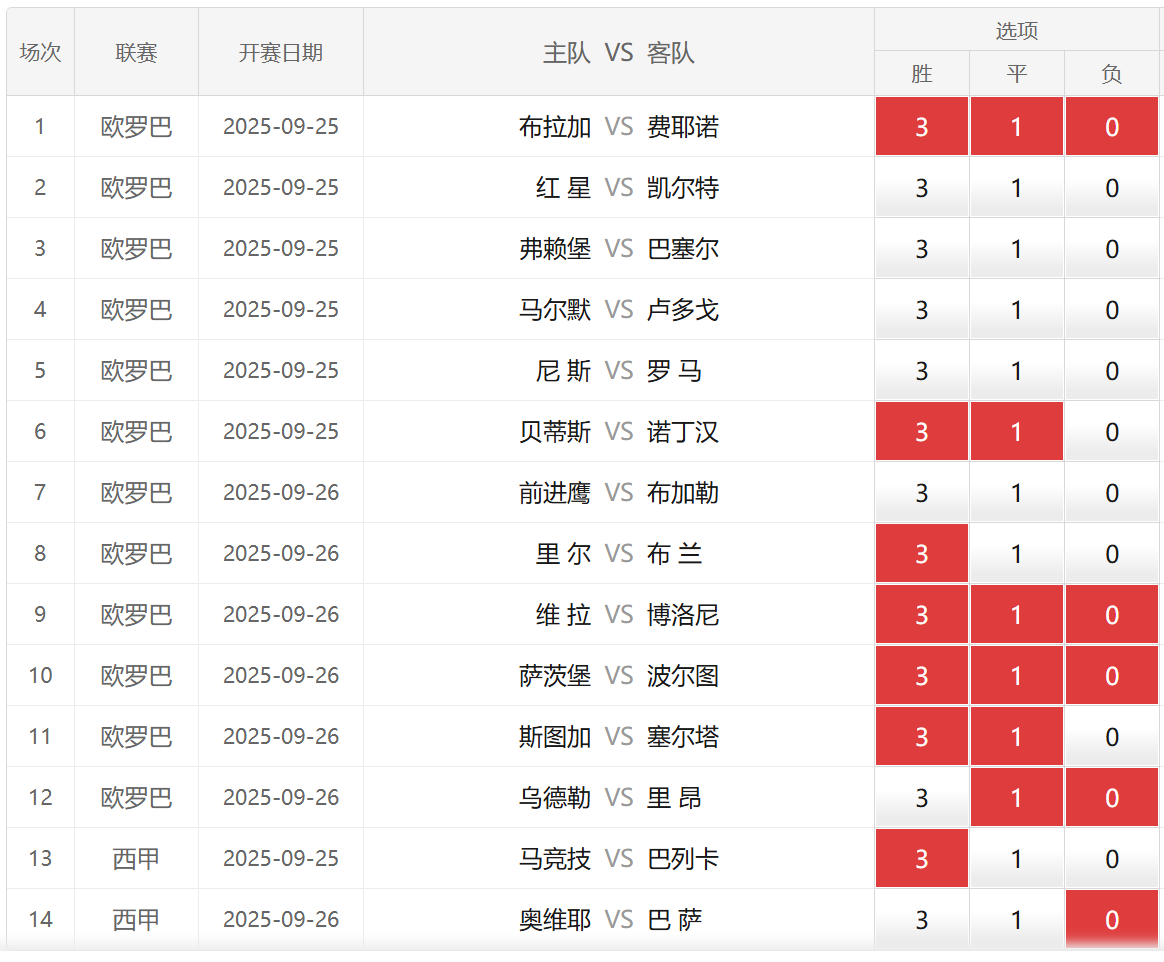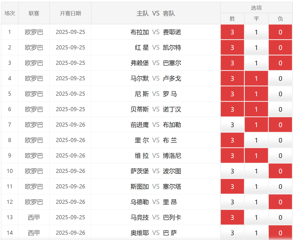 胜负彩25138期埃神足彩推荐:部分场次分享