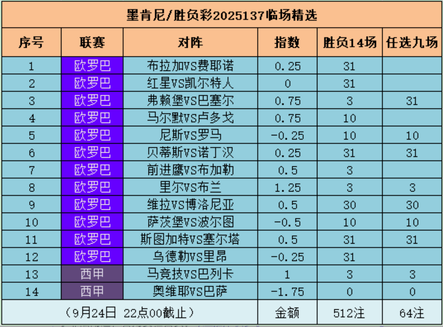 胜负彩25140期14场任九实单推荐:多为浅盘