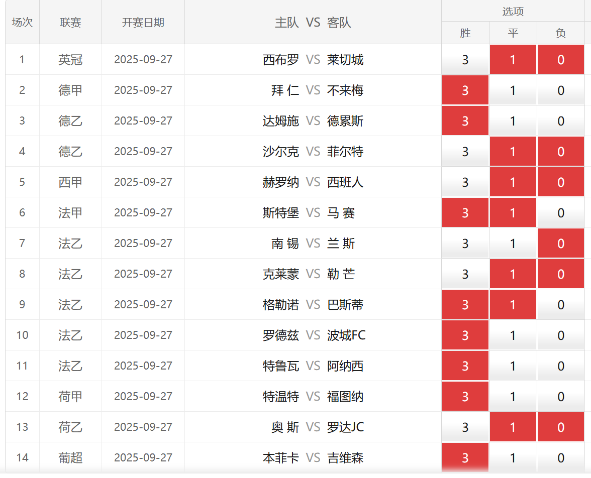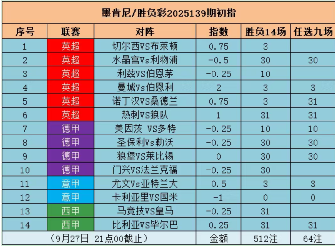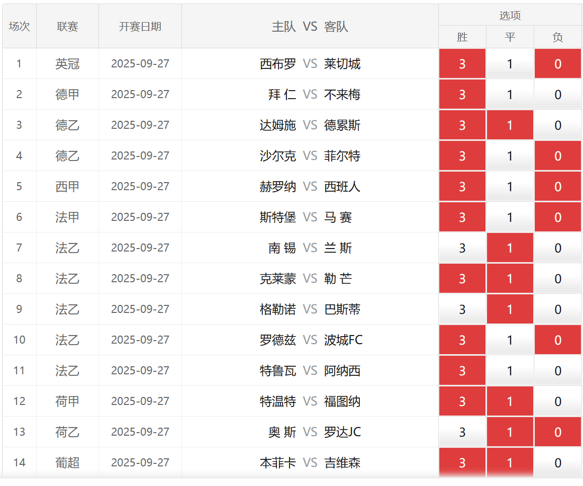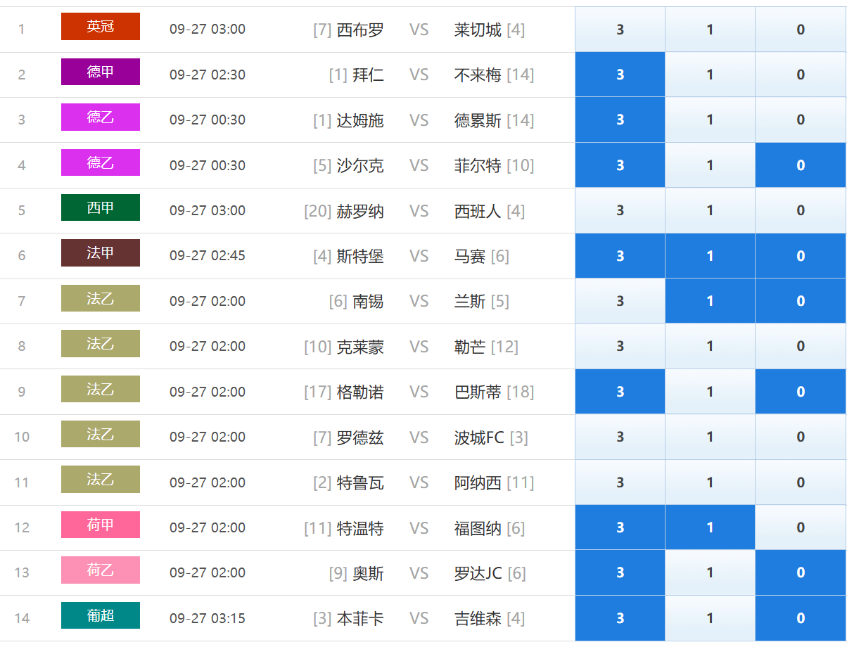 胜负彩25138期埃神足彩推荐:部分场次分享