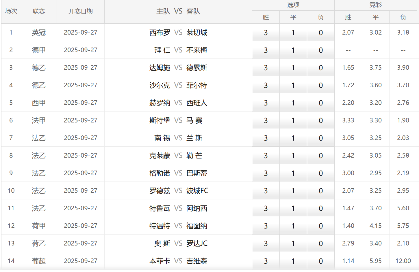 胜负彩|25138期足彩14场:拜仁高歌猛进 本菲卡小心