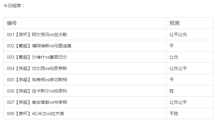 胜平负推荐:胜