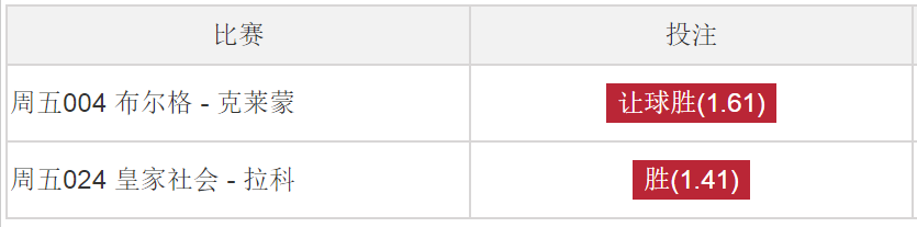 皇家社会上轮西甲客场2-4完败于黄色潜水艇比利亚雷亚尔,近期遭遇4连败,最近11轮各项比赛仅在联赛中击败塞维利亚,皇家社会最近11轮比赛只有1场没有失球,近10轮场均丢掉2.2球,皇家社会近10个主场2胜3平5负,期间有9场比赛都有进失球,场均打进1.9球,失2.3球、只有两场比赛的总比分不超过两球,他们是联赛主场赢球率最低的几支球队之一,皇家社会不久前宣布因为负面事件的影响,他们已经球队的主赞助商某宝网解除一切合作关系,拉科鲁尼亚上轮西甲主场面对升班马莱万特,在上半场一度建立两球的领先优势,不过随后吃到红牌并被对手逼成2-2平手,近6轮比赛2平4负,近9轮击败莱加内斯,近10轮场均丢掉2.5球之多,拉科鲁尼亚近10个客场2胜2平6负,期间仅在西甲和西班牙杯两次击败拉斯帕尔马斯,场均失球数高达2.6球,目前皇家社会也走在了前茅,老梁认为主胜是第一起点的