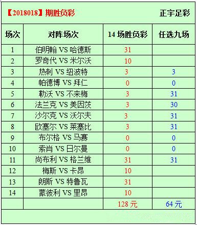 1. 本期足彩编号:18018期