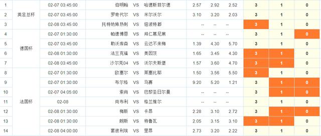 第18018期传统足彩以英联杯+德国杯+法国杯三大杯赛组成。由于是杯赛,使得本期赛果或意外频频,冷门不可不防。