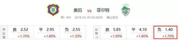 本场比赛平均初盘开出2.40 3.26 2.90,受注后暂时调整为2.57 3.11 2.74,亚盘普遍由初盘的主让平手/半球降为平手盘,近期爆发惊人战斗力的菲尔特令各大公司高看一线。奥厄各项赛事近11次对阵菲尔特仅取得1胜4平6负,最近的12个主场交手,7次打平,余下5次2胜3负,不过近3个主场奥厄均零封了对手(1胜2平)。菲尔特状态突出,但需要注意的是,菲尔特客场一共只打入9球,是联赛中客场进球最少的,故而本场稳妥起见可选择主队让1球负。