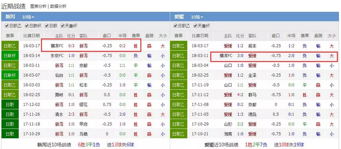 我们来看一下,双方的相同对手为横滨FC,横滨主场让出爱媛半一盘面,让给天鹅平半盘面,但是恒兵赢了爱媛,输给了天鹅,这说明平半仅仅是主场优势,而不是真实让的起,而半一盘面可以认定是实力碾压,当然这是简单的理解。