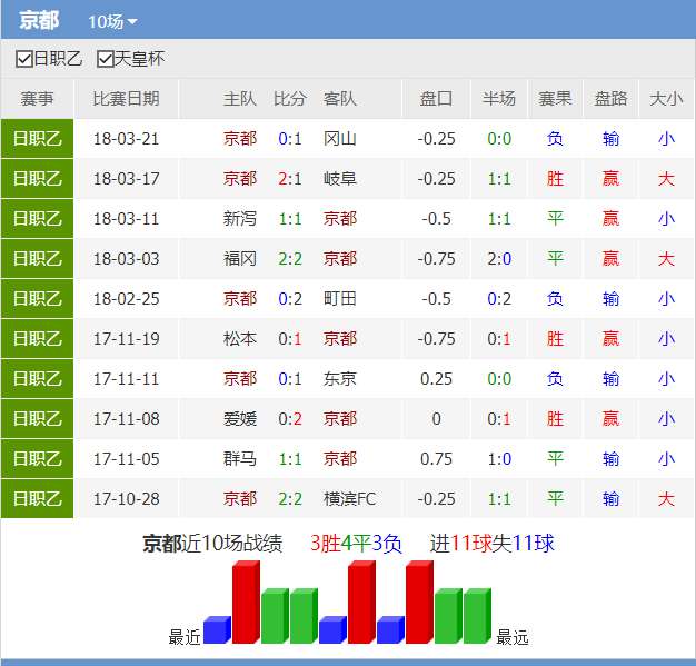 两队近6场比赛交锋,京都不死鸟取得2胜3平1负的战绩,近年交锋不惧对手,主流公司威廉希尔位本场比赛开出2.10 3.25 3.25的初赔组合,历史相同初赔组合下的15场日职乙赛事,客队取得5胜4平6负的战绩,不败率为60%。本场比赛亚盘开出主让平/半中水的初盘,后市大部分公司升盘至主让半球中水,历史交锋不占优的情况下盘口强势升盘半球生死盘,能有效阻挡上盘热度。
