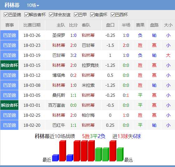 两队近6次交锋科林蒂安3胜2平1负,胜率达到50%。竞彩亚盘开出主让半球高水初盘,科林蒂安想要晋级就必须赢下比赛,但机构始终维持半球高水对主队支持力度不大,客队有机会全身而退。