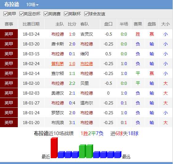 英甲中游球队布拉德福德本赛季39轮过后积53分排名第10,落后升级附加赛区4分,上轮联赛主场1-0战胜本赛季客场表现出色的吉林汉姆,球队获得近12场比赛首胜,本赛季56%的积分是在客场获得的,球队客场成绩明显优于主场,布拉德福德上轮联赛主场1-0战胜本赛季客场表现出色的吉林汉姆,球队获得近12场比赛首胜,布拉德福德头号射手怀克在遭遇三场停赛后本场比赛将解禁复出。