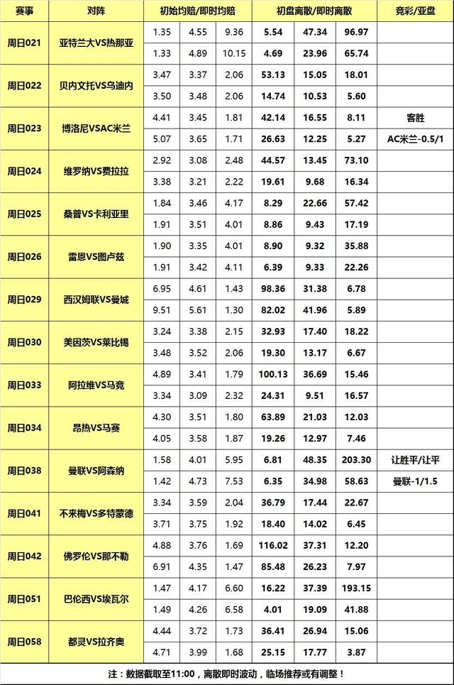 赔率方面,初赔开到 1.58 4.01 5.95,但即时伴随曼联足总杯晋级,以及阿森纳欧战平局,整体赔率一边倒向主队,即时赔率调整为 1.42 4.73 7.53,主胜优势被大幅夸大,对比上赛季同场指数 (2.48 3.22 2.98),两队实力对比出现翻天覆地变化。亚盘初盘开到主让一球高水,即时盘口直线上涨,目前盘口基本稳定在主让一球 / 球半中水,盘口处于相对稳定状态,但上盘水位目前波动幅度较大,盘口压力明显在曼联一边。离散指数基本正路,主胜离散 6.35 中位区间,平负指数也都在合理区间,整体指数上依然利好正路。综合分析来看,本场建议博胆曼联主胜,但结合盘口和赔率走势特征,本场博胆建议考虑主让 - 1 球单 1,亚盘曼联让一球 / 球半强走上盘稍微更妥。