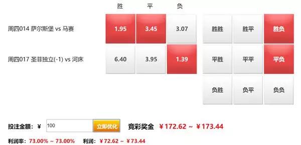 另一场串关比赛关注圣菲独立与河床的解放者杯小组赛,领头羊河床(8分)只需一场平局即可提前一轮从小组中出线。圣菲独立如果不胜,而同组的弗拉门戈击败埃梅莱克,他们将提前一轮出局。河床近期两线均发挥出色,取得一波12场不败(9胜3平)。即便是作客也是连续7场不败(6胜1平),而解放者杯的客场则是近9次作客(5胜1平3负)。竞彩目前给出主队让球,选择河床不败较为稳妥,推荐主队让球负。