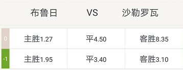 比如布鲁日VS沙勒罗瓦的比赛,如果两队半场比分为0-0,最终比分为2-0,那么“半全场”赛果为“平胜”,赔率为3.60。其他以此类推。