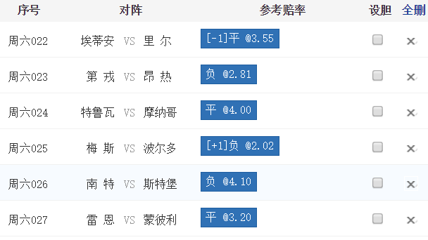 盘口推荐:贝蒂斯让平手 竞彩推荐0