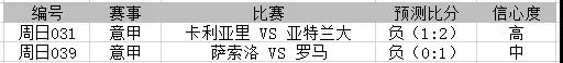 西甲三场比赛皆无明显战意,也最容易出现问题,由于皇马上轮打平,马竞已经锁定联赛亚军、巴萨则确定联赛冠军,这两场比赛值得大家注意。意甲比赛出现冷门的几率更大,最后一轮有5支球队抢4个保级名额,比如切沃目前需要看其他球队脸色,若最后一轮其余保级球队赢球,切沃很有可能因为净胜球劣势降级,这个时间段球队战意很重要,大家一定要分析好比赛战意再选择比赛。
