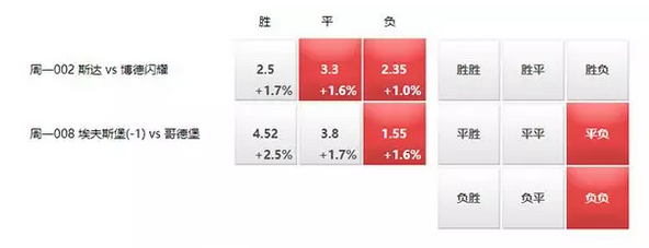 另外一场比赛选择周一002的挪超,斯达排名联赛垫底,上周末输球后炒掉了主帅邓普希,目前处于“群龙无首”状态。博德闪耀上一个客场赢了莫尔德,具备一定战斗力,本场可考虑双选客队不败。