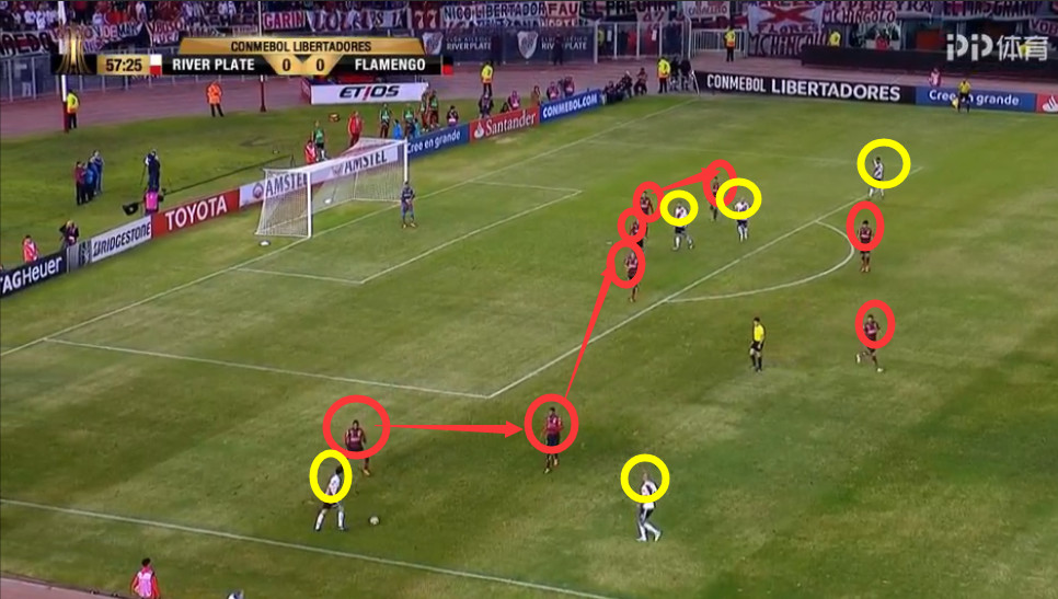 红衣是佛拉门戈,黄圈是河床。。全场基本都是这样兜圈圈,赢球真的不简单。