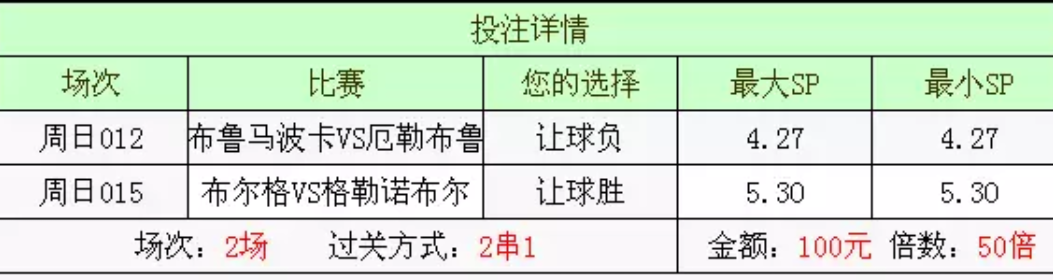 周日012让球负+周日015让球胜