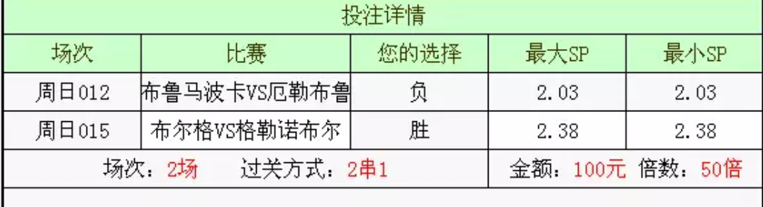 周日012负+周日015胜