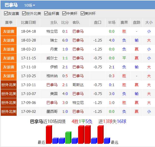 巴拿马在中北美预选中3胜4平3负积13分排名第3,历史首次晋级世界杯正赛,在最近一场友谊赛中客场1-0小胜当时FIFA排名第79位的同洲球队特立尼达和多巴哥,结束此前4场友谊赛1平3负的糟糕战绩,巴拿马最近6场主场比赛4胜2平胜率67%,其中4战零封对手,包括1-0完胜同洲劲旅哥斯达黎加,最近8场各项赛事仅在对阵两支FIFA排名75位以后的球队时完成零封,其余6战不仅场场丢球且场均丢球高达2.5球。