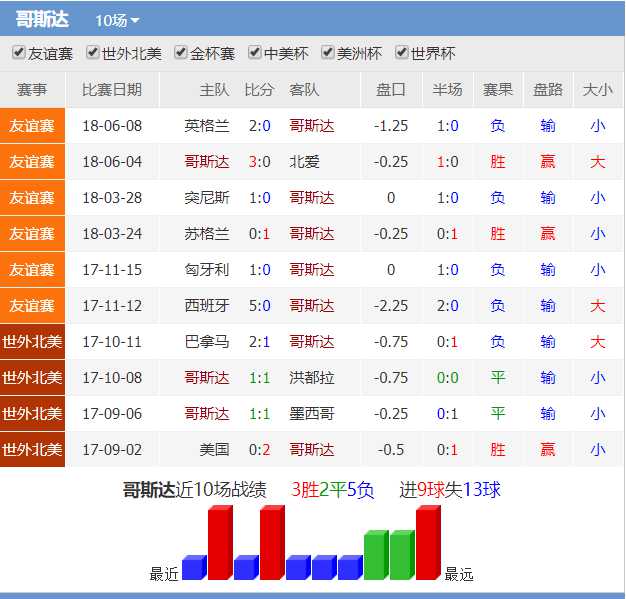 北美劲旅哥斯达黎加世预赛北美区比赛中力压巴拿马排名第2直接晋级世界杯,小组出线概率5.35是小组中最不被看好的球队,主力后卫弗朗西斯科卡尔沃效力于美职球队明尼苏达联,本赛季联赛中场均完成5.8次解围排名联赛第3多,此前39次面对欧洲球队取得10胜10平19负,不败率超过50%,上场比赛主力出战的情况下0-2不敌本届世界杯热门英格兰,最近4次面对欧洲球队取得2胜2负,输球的比赛从未净负超过2球。