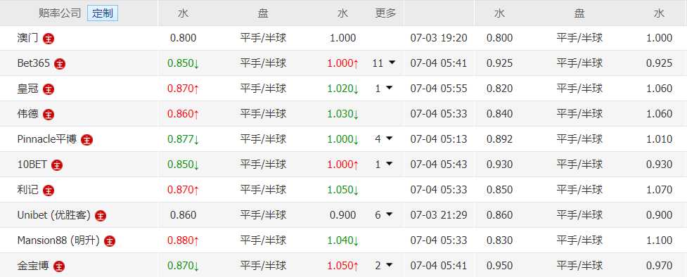 甲府风林上场比赛比对手早一天进行,且连续主场作战,而金泽塞维根则迎来连续第2个客场。甲府在体能上占据优势,本场亚盘初盘为主让平半中水,后市尚无明显调整,在金泽塞维根客场战力不俗的背景下,机构对甲府风林支持力度一般,本场不防看好客队不败。