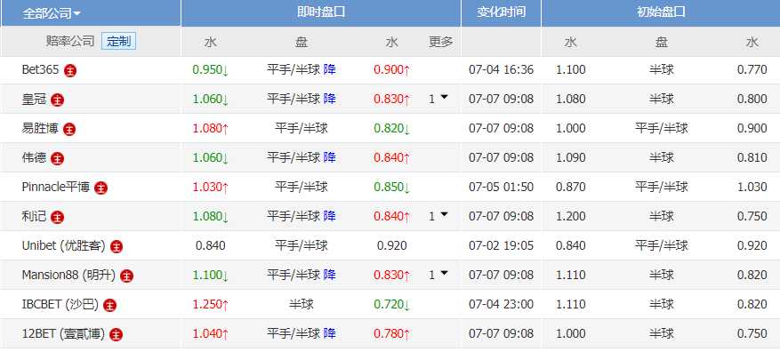 本场亚盘开出主让半球高水的初盘,后势统一降盘至主让平半中高水,东京绿茵在近况明显好于对手的情况下受到的支持反而有明显削弱,从盘面的走势,本场看好客队冈山不败,双方平局概率较高。
