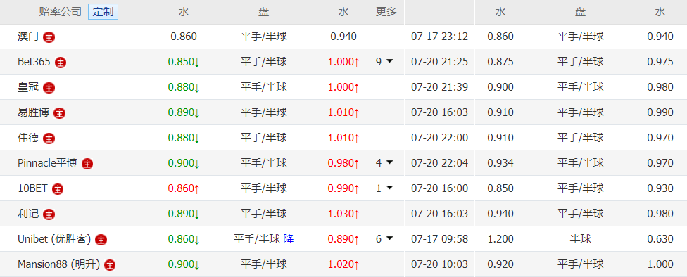 本场亚盘初盘为主让平半中水,受注后盘面稳定,福冈黄蜂头顶主场龙光环,再加上往绩6战交手福冈2胜4平0负的优势,上盘输半博全有诱上的嫌疑。本场建议客队不败。