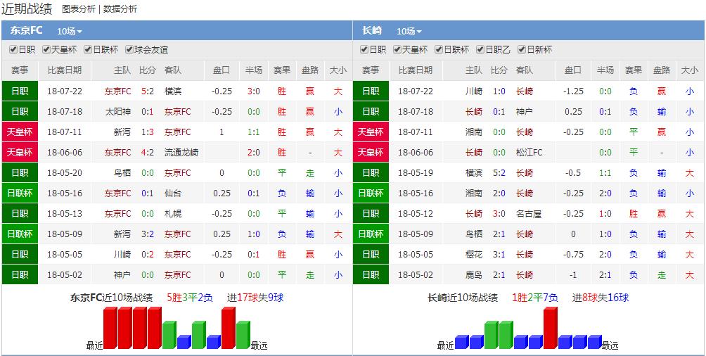 两队唯一一次正赛交手发生在本赛季,东京FC做客取得5:2的大胜,本场亚盘初盘为主让一球高水,后市统一退至半一中水,两队主客战绩对比鲜明,退盘有造上盘不稳之嫌,本场推荐主场胜出。