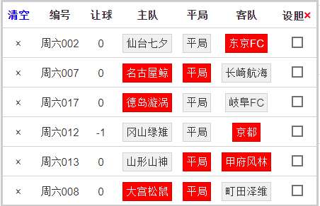 今天早场这个6串1选了两场日职四场日乙,可以选择同路的和自己认为有把握的其他场次组成3串1或4串1,祝大家好运!