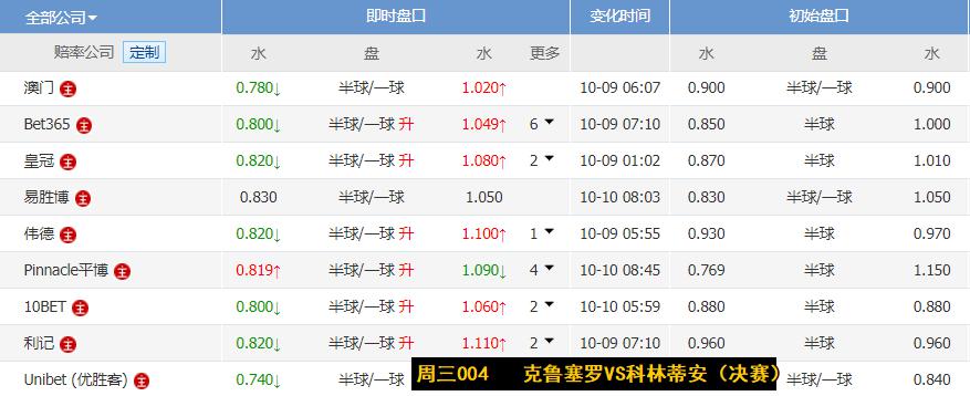 这场决赛是两回合制,所以主场的优势会可能放大,近期数据,科林蒂安客战10场2胜2平6负,客场战力极差,而克鲁塞近期10战也仅仅是获得两胜。双方的状态都不算好,科林蒂上轮0-3输给弗拉门,很有可能是存留实力,所以此战对克鲁塞罗较为不利。亚盘给出主让半球主队中低水初盘,后市升盘为主让半一盘主队超低水,按水位看,再升至1球盘也有可能,所以盘路上对主队较有利。