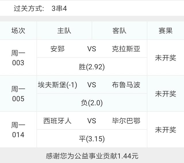 另外选了三场高风险的比赛串了一个3串4,大家谨慎参考!