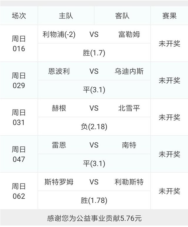 另外选了几场比赛组了一个5串11,这一次吸取昨天的教训,有胆有博,大家谨慎借鉴!