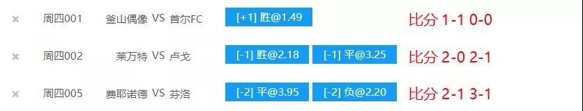 周四001 我昨天见到釜山是平手盘,此时出客让平半盘,亚盘机构的走势是看好客队,双双主的成绩是客队要好,亚盘这么走势,有诱上盘的嫌疑。初盘至少要加个门槛到客让平半均水。推荐主队不败,博取平局。比分双方有进球,1-1或0-0。