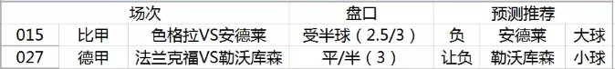 比甲+德甲 | 竞彩周日:大小球亚盘