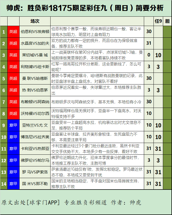 国米的主场相当稳定,平手盘对国米也是微微支持,推荐主队不败 31