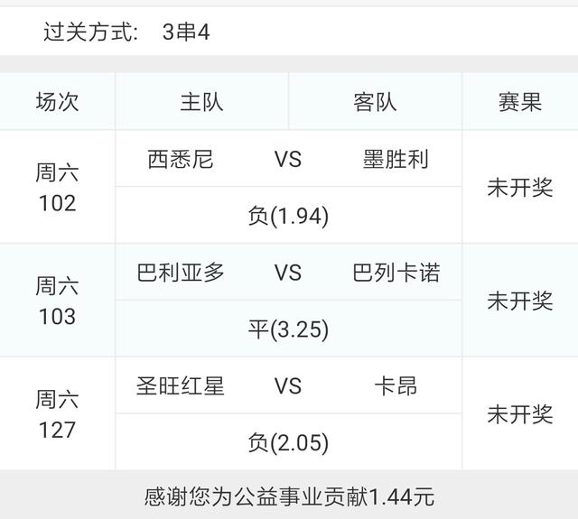 今天比赛比较多,就另外选了三场比赛组了一个3串4博单,大家谨慎参考!