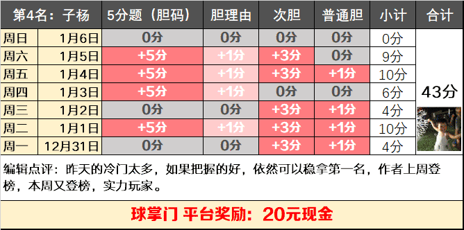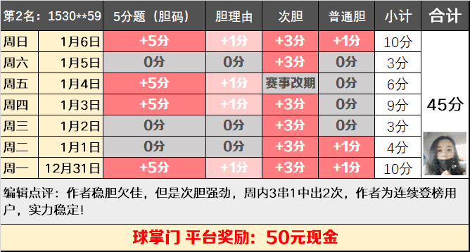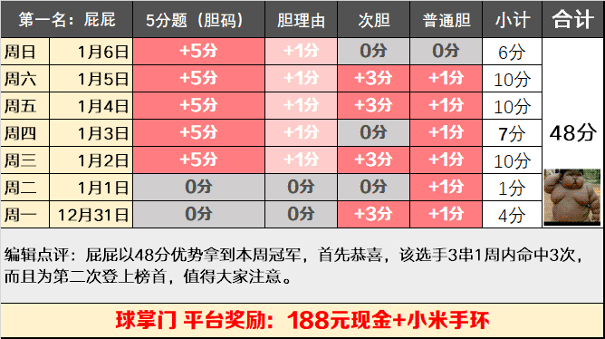 球掌门APP|擂台赛第19001期屁屁夺冠,3串1命中3次