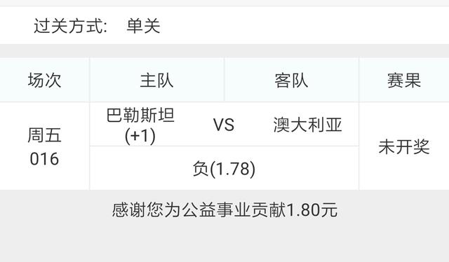 中国队个人一直认为本场比赛必胜,也买了单关胜。