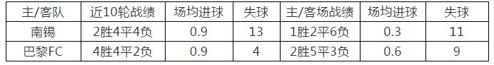 从上表数据中可以看出近10轮两队的各种数据对比客队巴黎FC明显好于主队南锡,通过更详细的数据来解析下两队: