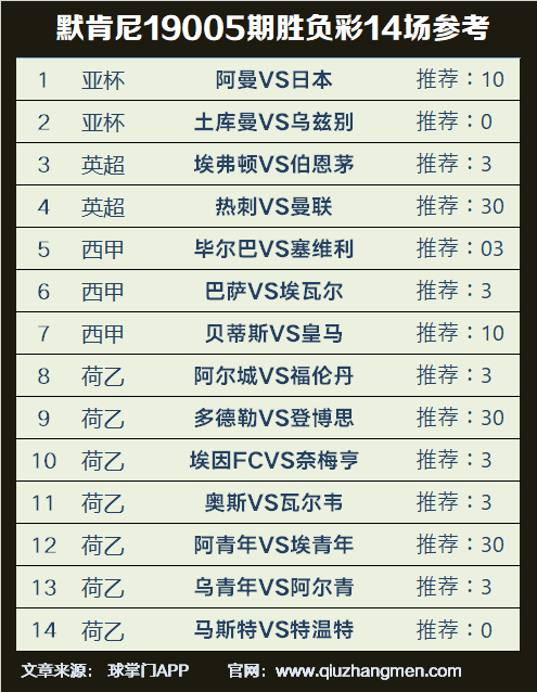胜负彩19005期混合竞猜,亚洲杯+英超+西甲+荷乙赛事,本期迎来一场大战,热刺主场迎战曼联,本期1月13日停售,敬请大家留意。