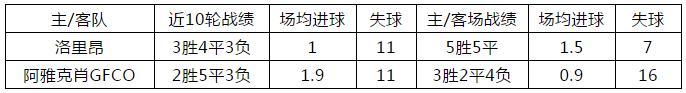 从上表数据中可以看出近10轮两队的各种数据对比主队洛里昂明显好于客队阿雅克肖GFCO,通过更详细的数据来解析下两队: