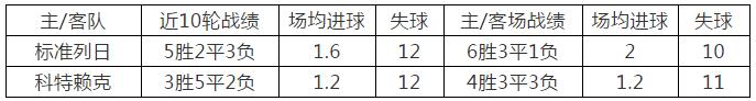 从上表数据中可以看出近10轮两队的各种数据可见标准列日是一支主场龙球队,而客队科特赖克主客场较为均衡。近期攻防状态来看主队要好于客队。基于以上分析再结合盘口和交战记录,本场看好标准列日主场取胜。