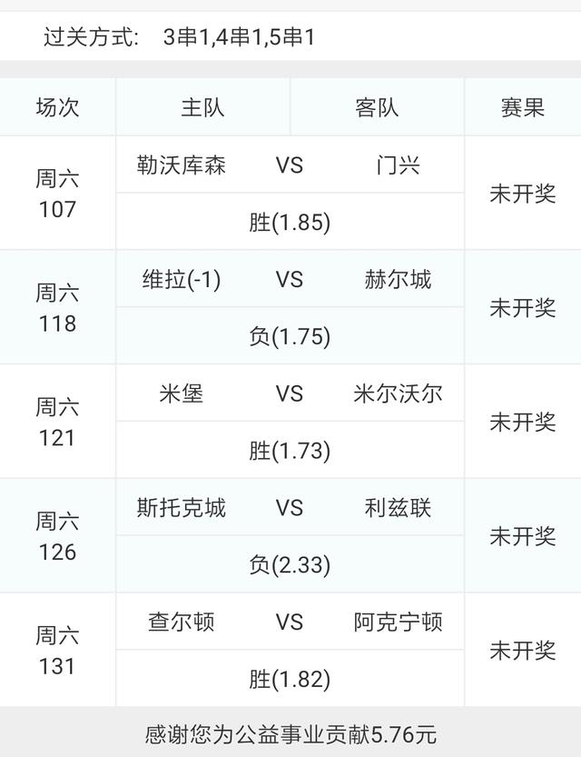 今天的比赛比较多,又选了几场比赛组了一个5串16,大家谨慎借鉴!
