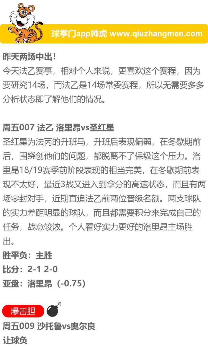 帅虎:周五7场法乙赛事推荐-冲击连红