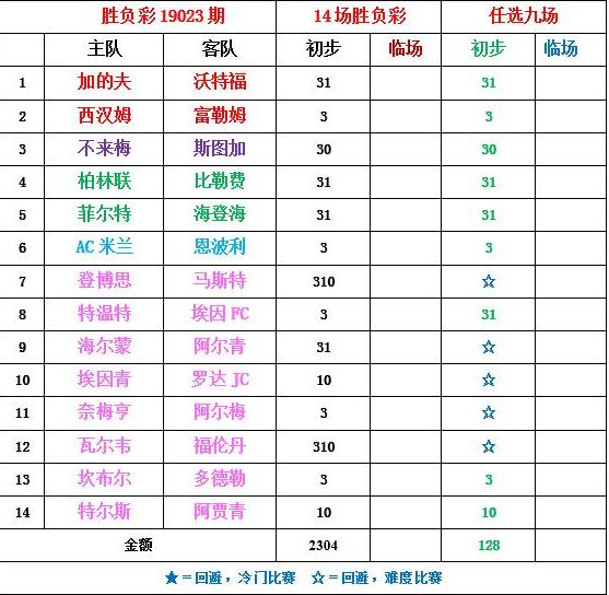 本期胜负彩混合了5个联赛,彼此之间关联度较低,这也直接增加了猜想难度,相关场次理由如下: