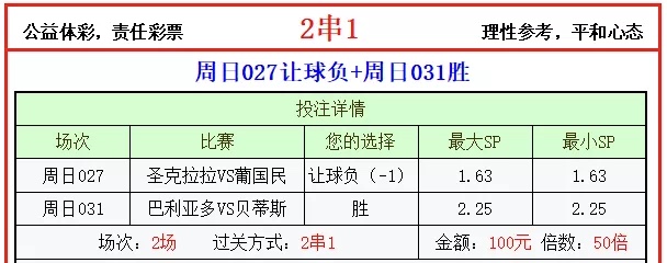 结论: 周日031胜