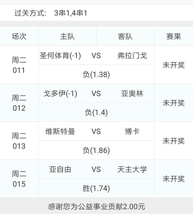 另外选了四场南美比赛组了一个低赔4串5,大家谨慎参考。
