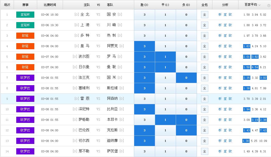 本期周六任九主要由欧冠+欧联组成。