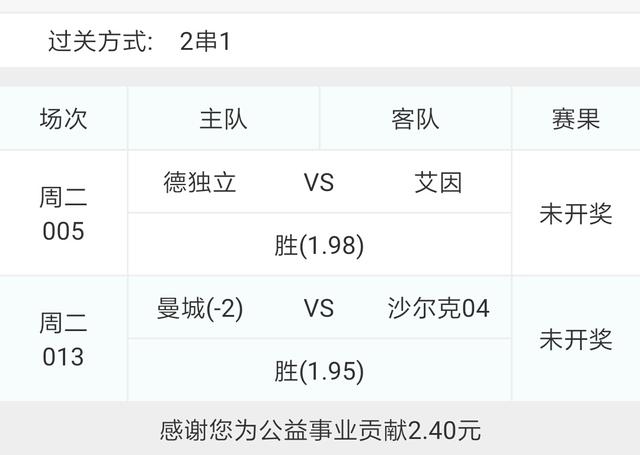 博单2串1选了德黑兰独立胜和曼城让胜。